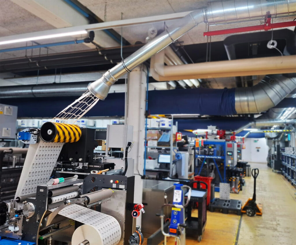 Um den steigenden Produktionsanforderungen gerecht zu werden, hat Matho vor kurzem bei CARINI ein komplettes System zur Randstreifenentfernung installiert. Die Lösung entfernt Beschnitt von fünf Druckmaschinen, einschließlich selbstklebender Matrizen, und leitet das Material direkt zu einer Ballenpresse für eine saubere, effiziente Entsorgung.
